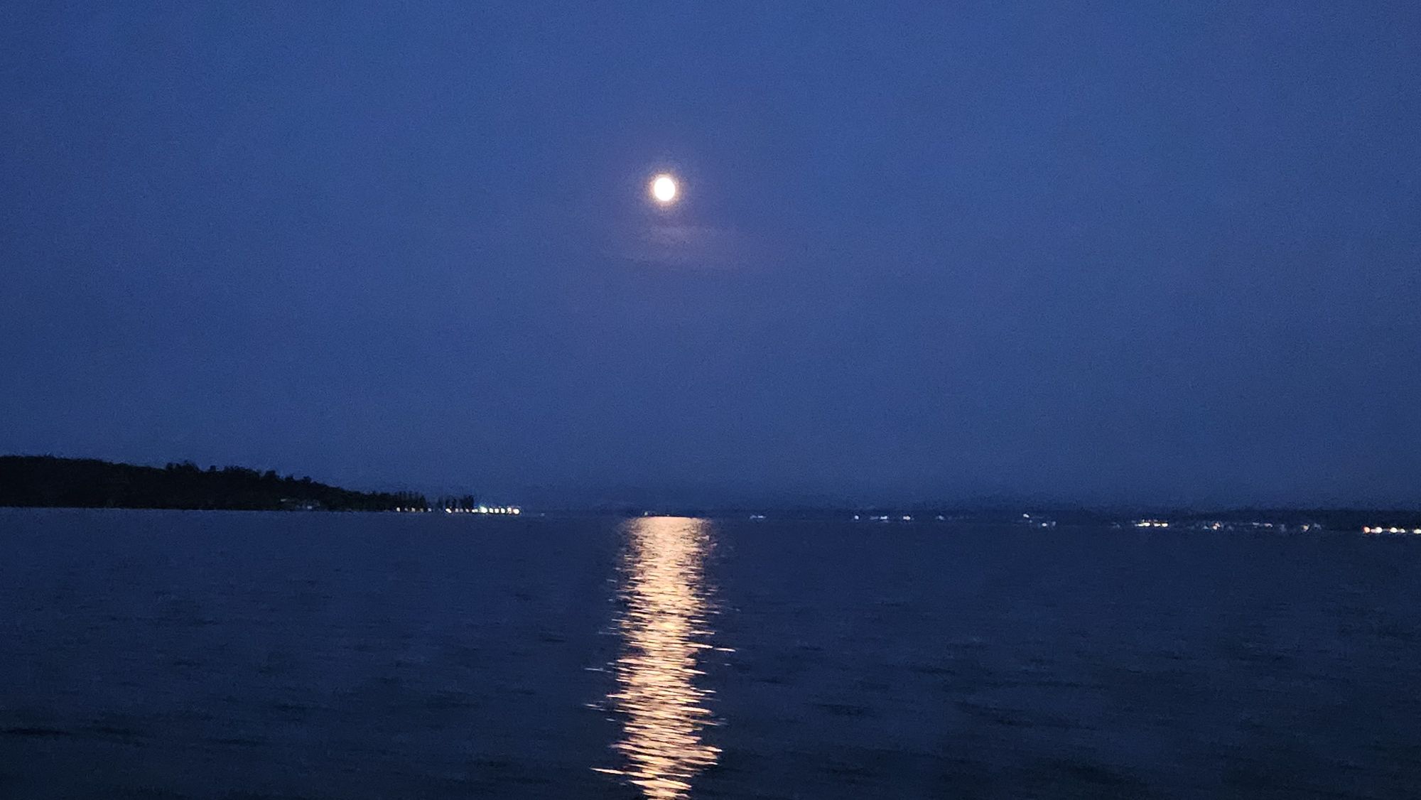 Der Abend war schlichtweg zauberhaft: In gemütlicher Runde genossen wir das Konzert und den goldorangen Sonnenuntergang. Bald danach brachen wir auf und erlebten den Mondaufgang über den Pappeln von Unteruhldingen. Das goldene Mondlicht lag über dem tiefblauen See und begleitete uns auf unserem Heimweg – ein Genuss für Augen und Seele.