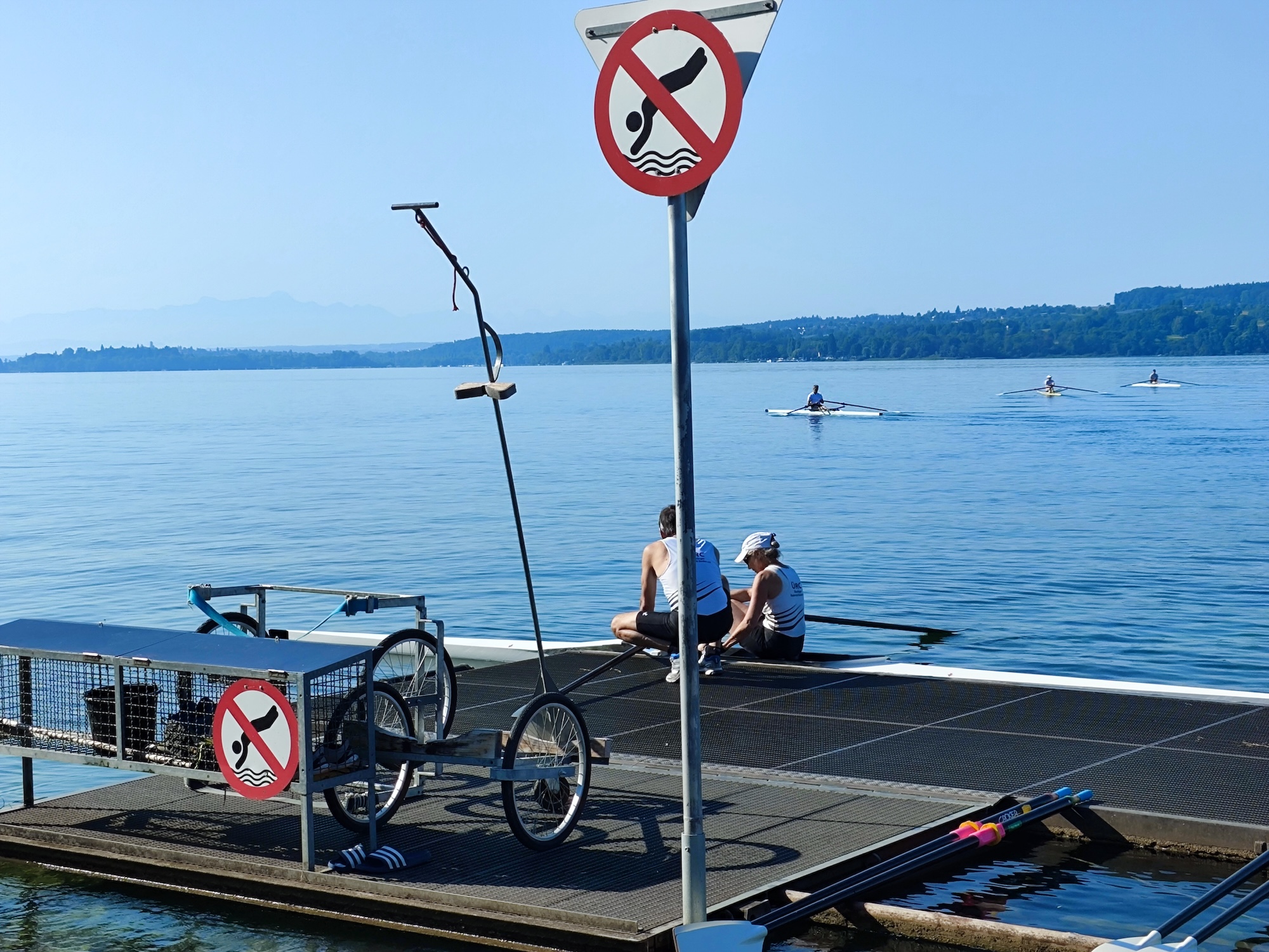 Am Kurs nahmen sowohl Ruderneulinge als auch langjährige erfahrene Ruderinnen und Ruderer teil. Es begann mit einer theoretischen Einführung zum Thema Kentern und Wiedereinstieg in den schmalen Einer. Manuel und Rolf erklärten anschaulich, welche Schritte im Ernstfall notwendig sind um sicher ins Boot zurückzukehren, und welche Fehler man dabei vermeiden sollte.