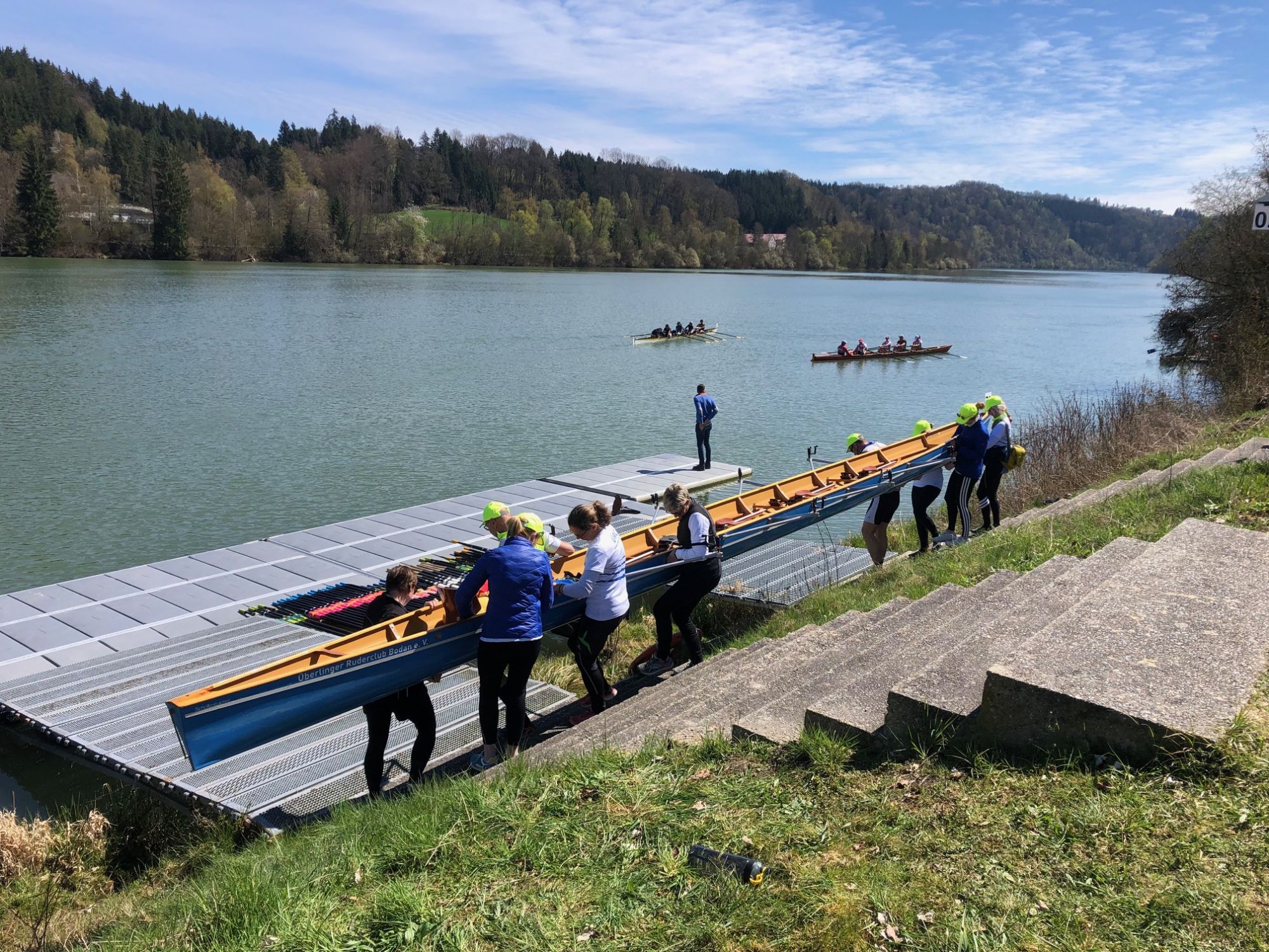 Beim 46. Inn-River-Race gingen drei Mannschaften des ÜRC an den Start. Gerudert wird auf dem Inn von der Marienbrücke 5,5 Kilometer flussabwärts bis zum Ziel vor dem Passauer Ruderclub. Vom ÜRC hatten sich der von Ulrike Gut trainierte und gesteuerte Gig-Achter angemeldet sowie zwei von Conny Fähndrich und Stefan Stöckigt trainierte Gig-Vierer Mannschaften.