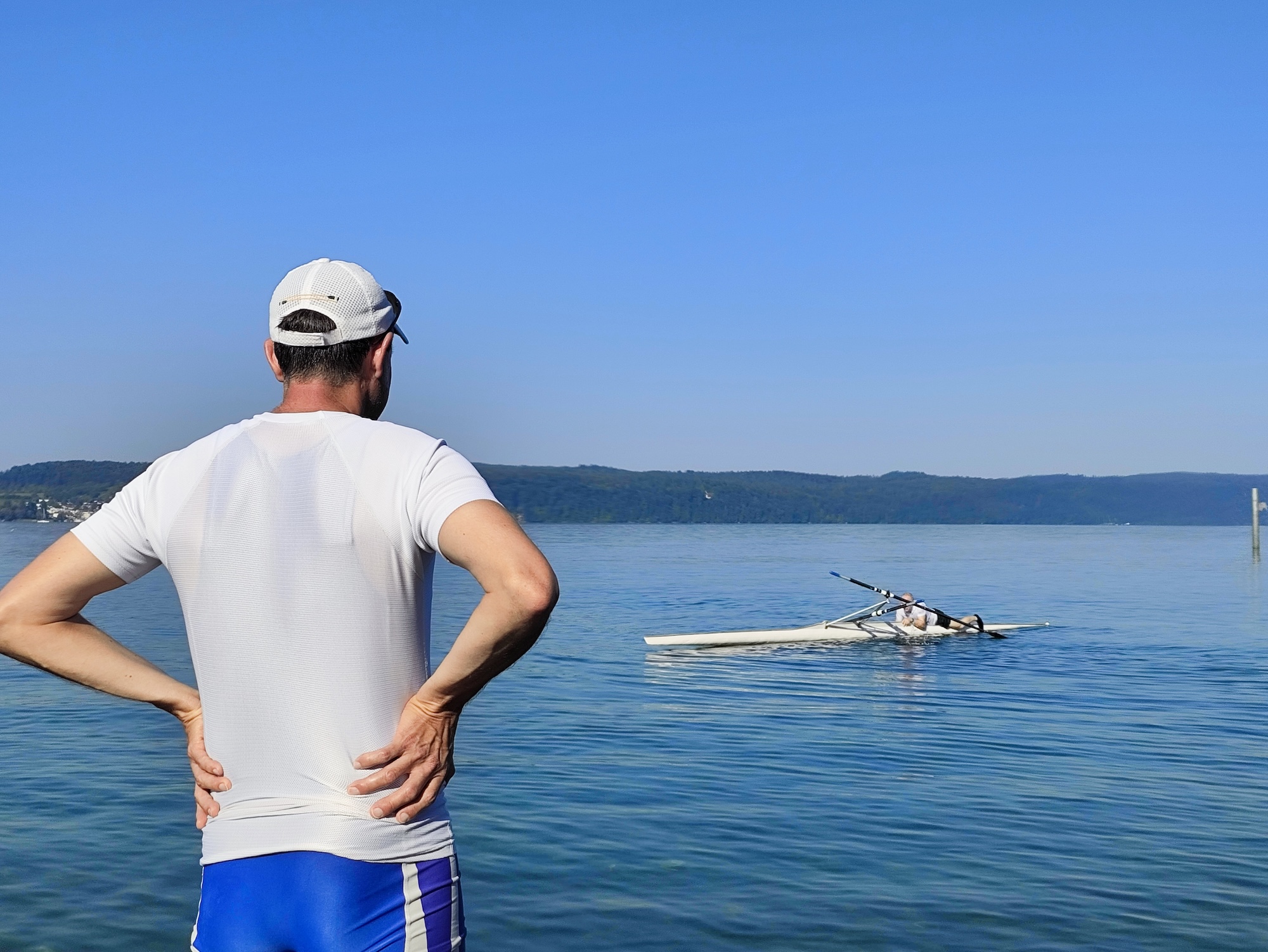 Danach ging es auf eine Runde begleitetes Rudern im schmalen Einer aufs Wasser. Unter Manuels wachsamen Augen ruderten die Teilnehmer los. Mit seinen Tipps fanden die Teilnehmer mehr Balance, verbesserten ihre Rudertechnik und konnten den Umgang mit den schmalen Booten üben.