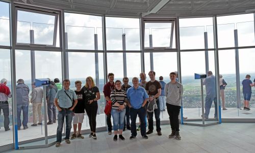 „Hoch hinaus“ hieß es für zehn Jugendliche und (junge) Erwachsene am ersten Samstag im Mai. Um 12 Uhr war Treffpunkt am Ruderclub in Überlingen, bevor es dann mit zwei Autos nach Rottweil ging. Kurz vor Rottweil wurde noch der zehnte Mitfahrer, ein auswärtiges Mitglied, aufgesammelt, sodass wir gegen 14.15 Uhr zu zehnt am ThyssenKrupp Test-Aufzugsturm bei Rottweil ankamen.