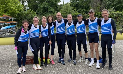 Das gemischte ÜRC-Masterteam kämpfte gleich beim Start auf der Außenposition mit dem Wind und musste einen unfreiwilligen Stopp einhalten, sich neu ausrichten und weiterfahren, leider dann den anderen Booten hinterher. Trotzdem fing sich die Überlinger Mannschaft schnell wieder und kam in gutem Einklang aller acht Ruderer mit kontinuierlicher Schlagzahl 30 gut über die abwechslungsreiche Strecke und erreichte Platz 26 von 40.