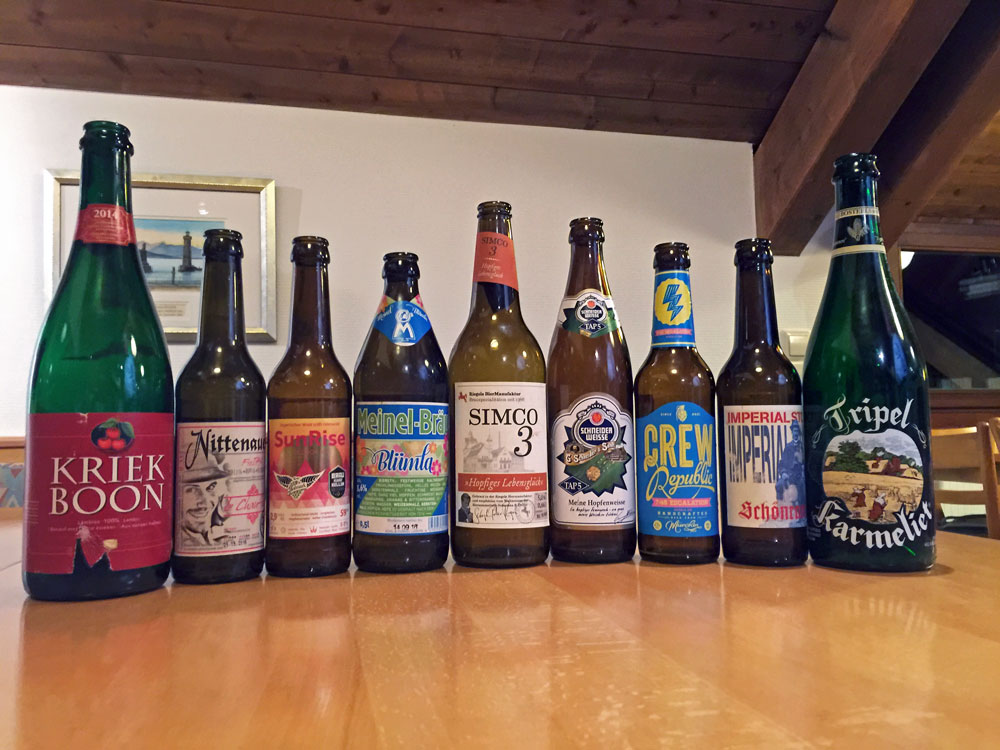Alle Biere wurden von Willi, dem Sommelier, kompetent erklärt und beschrieben: Stark gehopft, hefebetont, Bittereinheiten zwischen 33 und 83, Geschmack und Aromen, oft durch spezielle Hopfensorten, Brauart, Alkoholgehalt (von 0 bis 9,5 %) usw.
