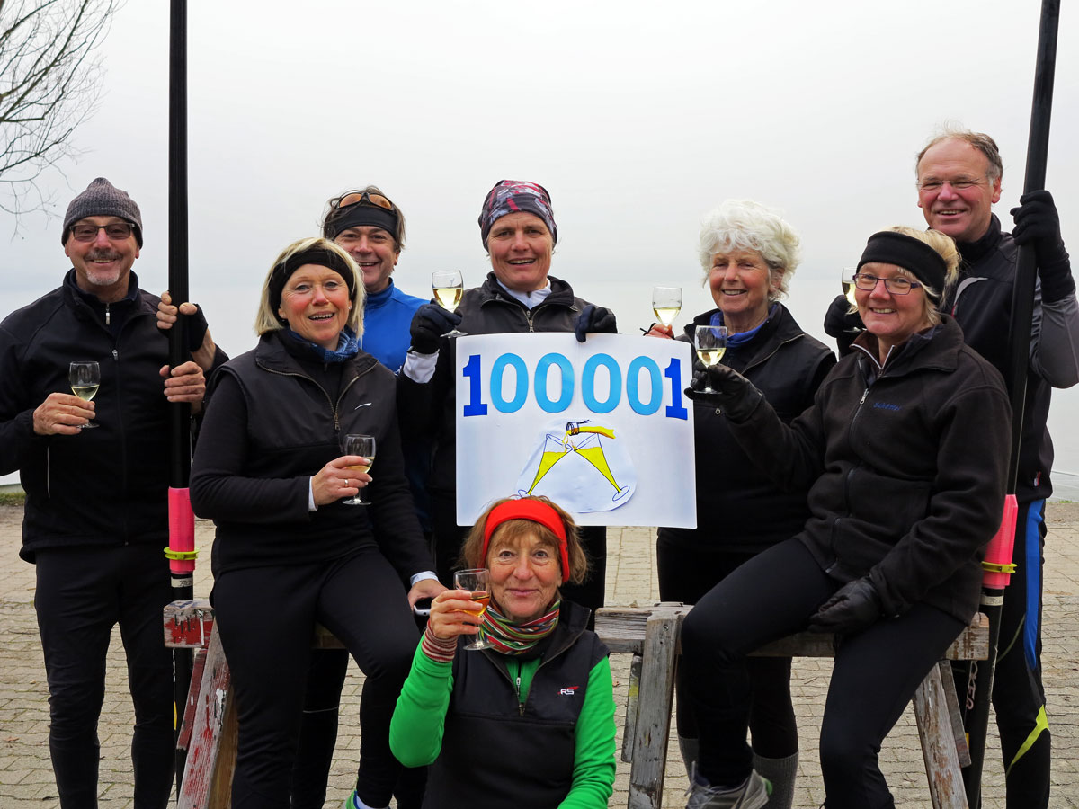 Die dennoch erreichten 100.001 km waren es uns wert, mit einer Flasche Prosecco auf das schöne Ruderjahr 2015 anzustoßen und uns auf gemeinsame Ausfahrten und erlebnisreiche Wanderfahrten 2016 zu freuen.