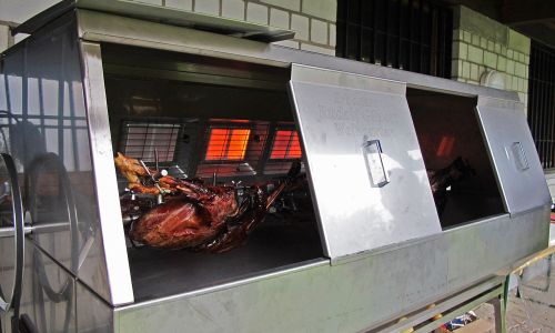 Vor der Eingangstür wurden die ankommenden Gäste durch einen appetitanregenden Duft begrüßt. Ein Frischling und ein Reh drehten sich bereits in dem riesigen, geschlossenen Profigrill am Spieß. Als passionierter Jäger hatte Markus Rockenstein das Wild natürlich selbst erlegt und auch verarbeitet. Auch der leckere Kartoffel- und Gurkensalat waren hausgemacht, dazu gab es noch Grillkartoffeln und Bauerbrot.