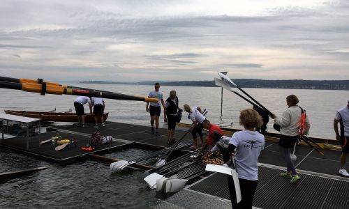 Nach der Taufe trugen acht Ruderinnen und Ruderer sowie der Steuermann den nun nicht mehr namenlosen Achter zum Steg und demonstrierten, wie elegant das Riemenboot mit einer geübten Mannschaft über das Wasser gleitet. Die zahlreich erschienen Vereinsmitglieder und Gäste spendeten Applaus und machten Fotos.