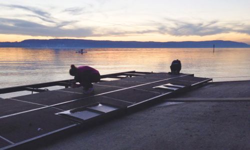 Am Donnerstag, den 24.10.13 und Freitag, den 25.10.13 wurden die ersten 20 m der neuen Laufschienen an Land zusammengebaut und dann im Wasser auf die bereits vorhandenen Stahlpoller aufgesetzt. Ein Taucher hat sie dort befestigt. Man kann sehr gut schon heute sehen, wie das Ganze mal wird. Nun wird der Steg selber geändert, so dass er später auf die neuen Laufschienen aufgesetzt werden kann. Weiter wird die Firma Villieber dann am Montag, den 4. November beginnen, die alte Betonfläche zu entfernen. Die Bilder wurden von Hans Schminner und Walter Nutz gemacht.